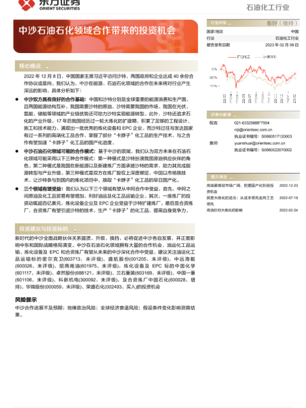 【东方证券】【20230209】石油化工行业:中沙石油石化领域合作带来的投资机会-18页 行业研究