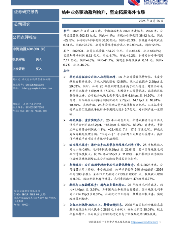 【西南证券】【20250827】中海油服-2025年半年报点评-5页 证券期货研究报告