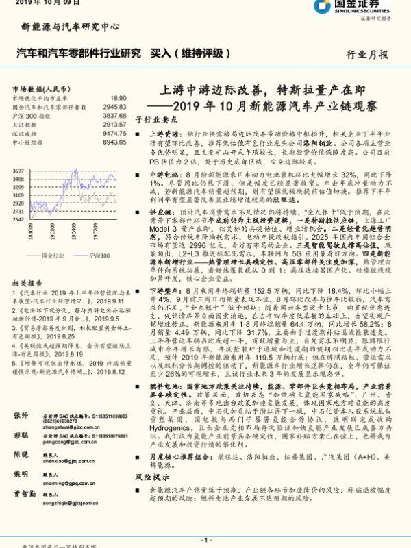 【国金证券】【20191009】2019年10月新能源汽车产业链观察:上游中游边际改善,特斯拉量产在即-39页 行业研究
