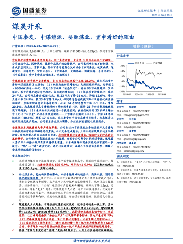 【国盛证券】【20250629】煤炭开采行业周报:中国秦发、中煤能源、安源煤业,重申看好的理由-18页 证券期货研究报告