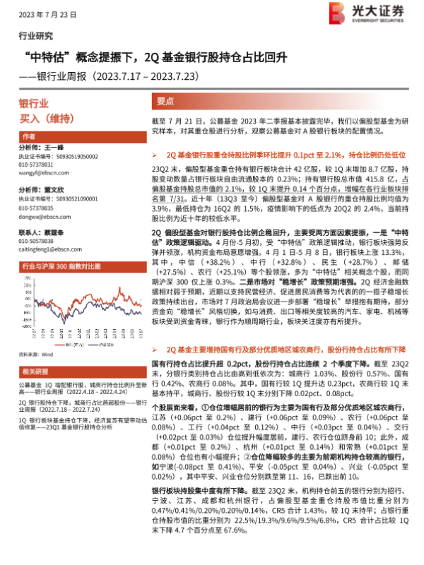 【光大证券】【20230723】‘中特估’概念提振下,2Q基金银行股持仓占比回升-13页 行业研究