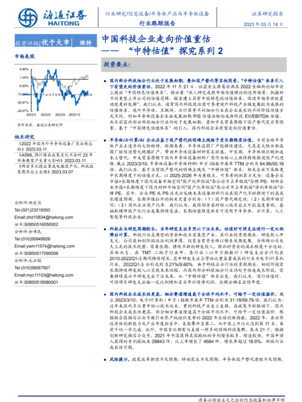 【海通证券】【20230314】20230314-海通证券-半导体产品与半导体设备“中特估值”探究系列2:中国科技企业走向价值重估-10页 行业研究