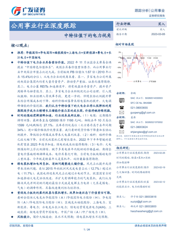【广发证券】【20230305】公用事业行业深度跟踪:中特估值下的电力视角-24页 行业研究