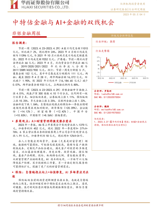 【华西证券】【20230504】中特估金融与AI+金融的双线机会-13页 行业研究