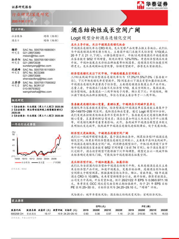 【华泰证券】【20200817】社会服务行业:Logit模型分析酒店连锁化空间-酒店结构性成长空间广阔-34页 行业研究