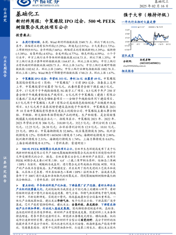 【华福证券】【20250216】20250216-华福证券-新材料周报:中策橡胶IPO过会,500吨PEEK树脂聚合及改性项目公示-12页 行业研究