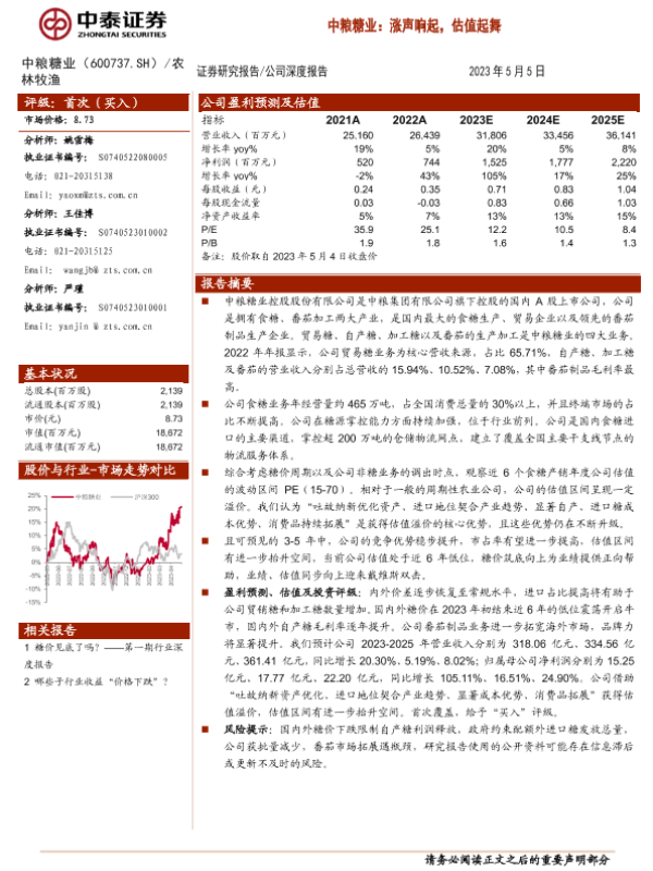 【中泰证券】【20230505】中粮糖业:涨声响起,估值起舞-23页 行业研究