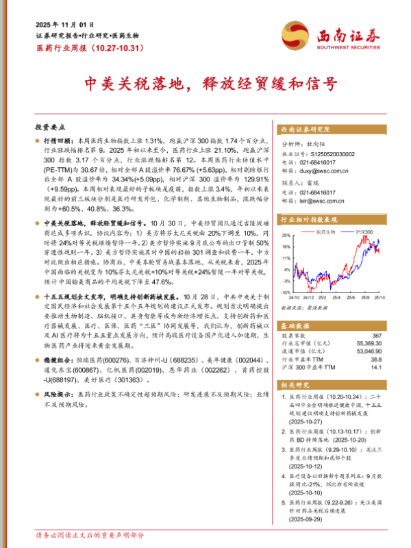 【西南证券】【202511】医药行业周报(10.27-10.31)-30页 证券期货研究报告