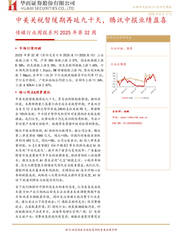 【华西证券】【20250817】腾讯-中美关税暂缓期再延九十天,腾讯中报业绩盈喜-14页 证券期货研究报告