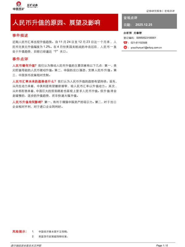 【五矿证券】【202512】人民币升值的原因、展望及影响-6页 证券期货研究报告