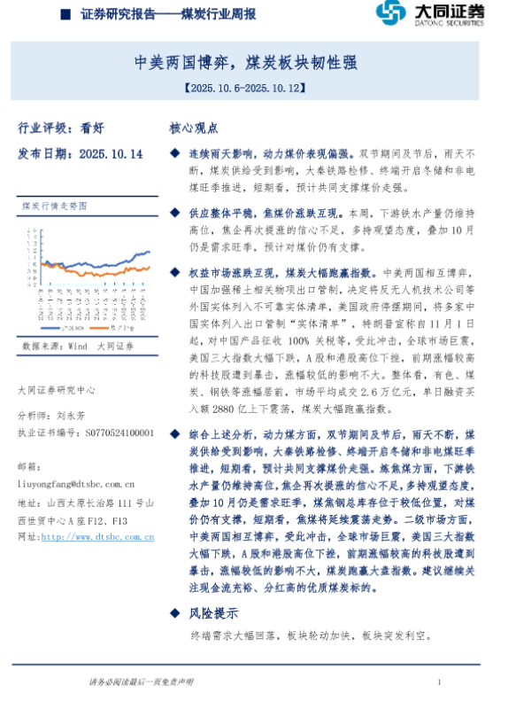 【大同证券研究中心】【202510】煤炭行业周报-14页 证券期货研究报告