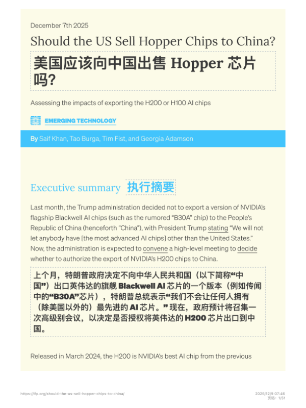 【IFP】【2025】Should the US Sell Hopper Chips to China?美国应该向中国出售Hopper芯片吗?-51页 行业研究