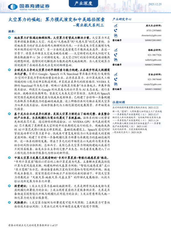 【国泰海通证券】【202501】太空算力的崛起:算力模式演变和中美路径探索-37页 证券期货研究报告