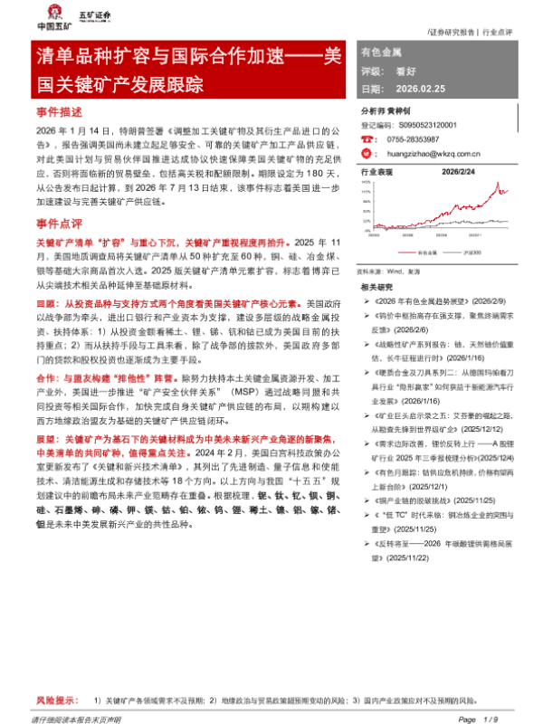 【五矿证券】【202602】清单品种扩容与国际合作加速——美国关键矿产发展跟踪-9页 证券期货研究报告