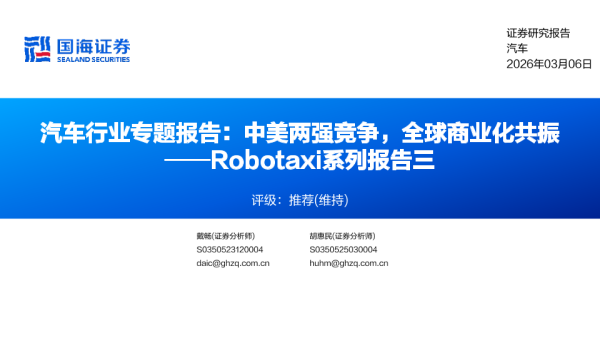 【国海证券】【202603】汽车行业专题报告:中美两强竞争,全球商业化共振 ——Robotaxi系列报告三-27页 证券期货研究报告