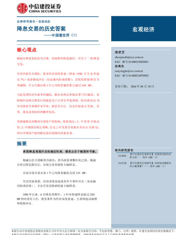 【中信建投证券】【20240828】中国看世界(1):降息交易的历史答案-17页 行业研究