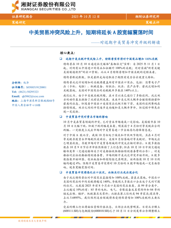 【湘财证券】【202510】对近期中美贸易冲突升级的解读-12页 证券期货研究报告