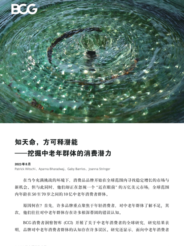 【波士顿咨询公司】【202308】知天命,方可释潜能 —挖掘中老年群体的消费潜力-12页 市场调研