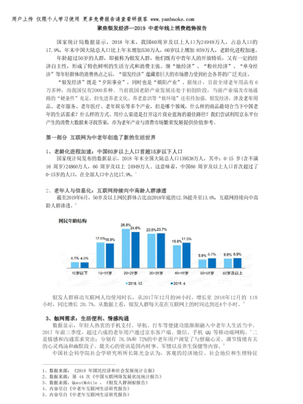【出品方未明确提及,从文档名推测可能是研究机构或咨询公司】【2019】聚焦银发经济—2019中老年线上消费趋势报告-10页 市场调研