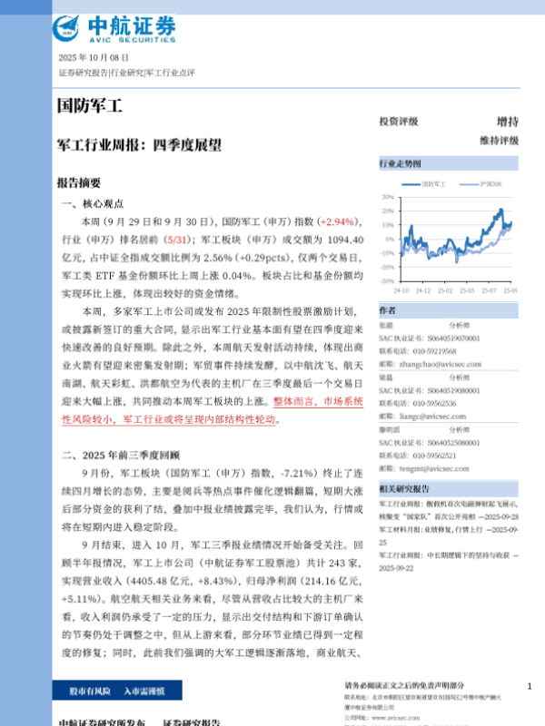 【中航证券】【202510】军工行业点评-14页 证券期货研究报告