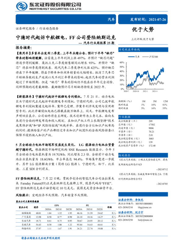 【东北证券】【20210726】宁德时代起诉中航锂电,FF公司登陆纳斯达克---汽车行业周报第25期-16页 行业研究