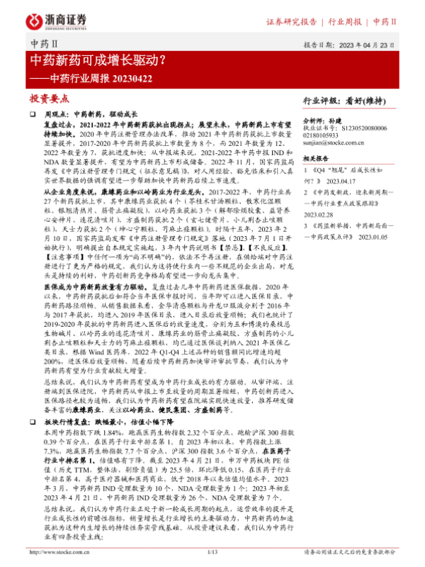 【浙商证券】【20230423】中药新药可成增长驱动?-13页 行业研究