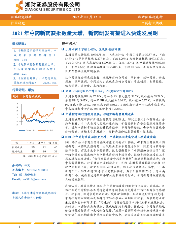 【湘财证券】【20220112】2021年中药新药获批数量大增,新药研发有望进入快速发展期-12页 行业研究