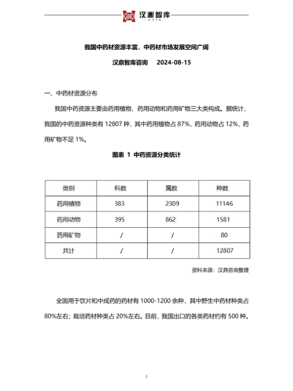 【汉鼎智库咨询】【20240815】我国中药材资源丰富,中药材市场发展空间广阔-14页 行业研究