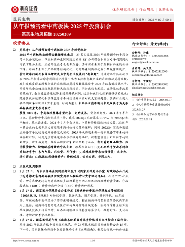 【浙商证券】【20250209】从年报预告看中药板块2025年投资机会-16页 行业研究