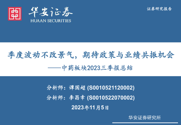 【华安证券】【20231105】中药板块2023三季报总结:季度波动不改景气,期待政策与业绩共振机会-37页 行业研究