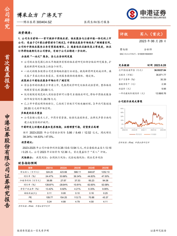 【申港证券】【20230628】博采众方 广济天下——博济医药 300404.SZ-27页 行业研究