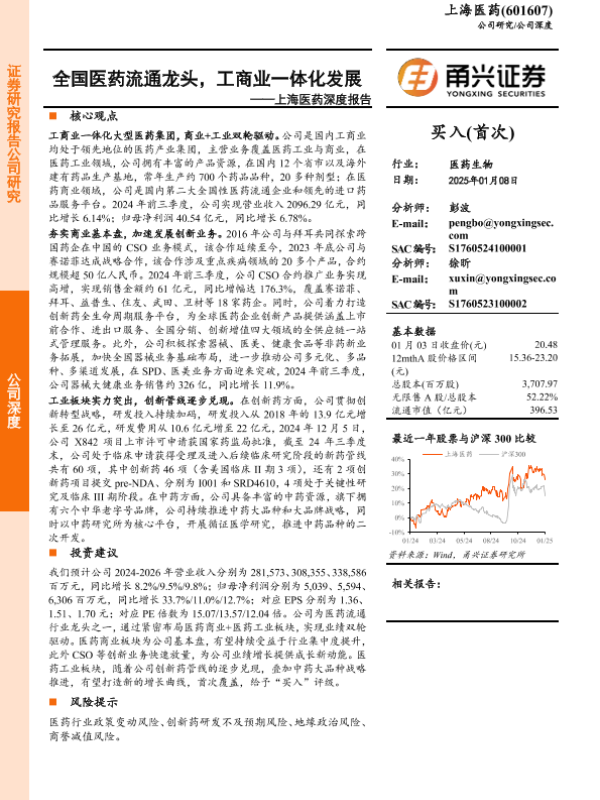 【甬兴证券】【20250108】20250108-甬兴证券-上海医药-601607.SH-上海医药深度报告:全国医药流通龙头,工商业一体化发展-19页 行业研究