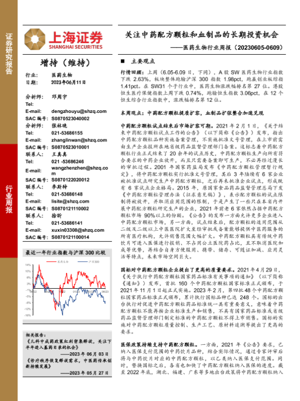 【上海证券】【20230611】关注中药配方颗粒和血制品的长期投资机会-27页 行业研究