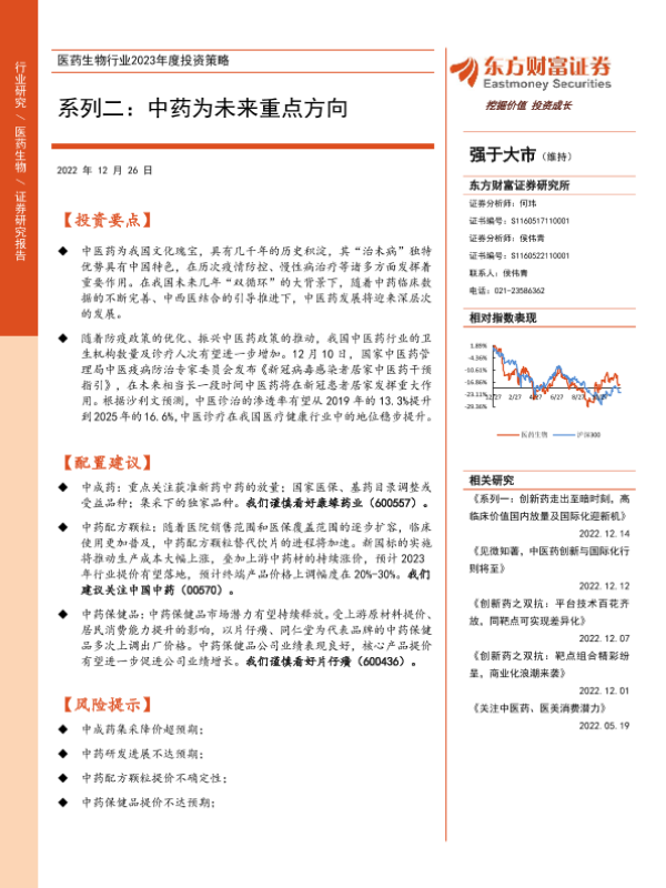 【东方财富证券】【20221226】医药生物行业2023年度投资策略:系列二:中药为未来重点方向-23页 行业研究