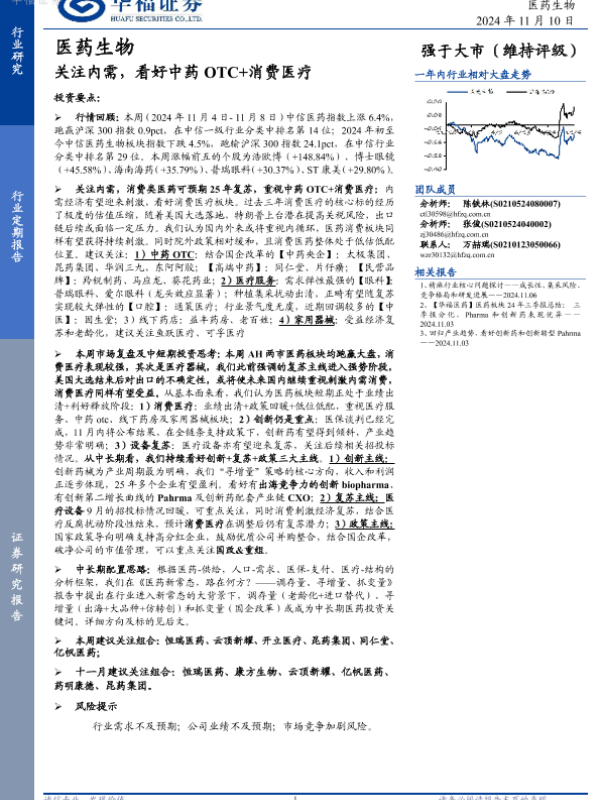 【华福证券】【20241110】医药生物:关注内需,看好中药OTC+消费医疗-20页 行业研究