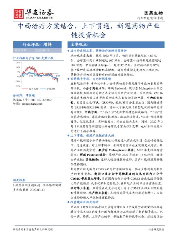 【华安证券】【20220318】医药生物行业专题:中西治疗方案结合,上下贯通,新冠药物产业链投资机会-46页 行业研究