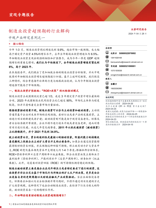 【西部证券】【20240428】中观产业研究系列之一:制造业投资超预期的行业解构-20页 行业研究