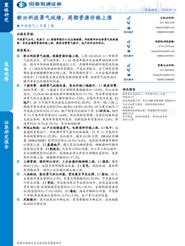 【国泰海通证券】【202601】新兴科技景气延续,周期资源价格上涨-11页 证券期货研究报告