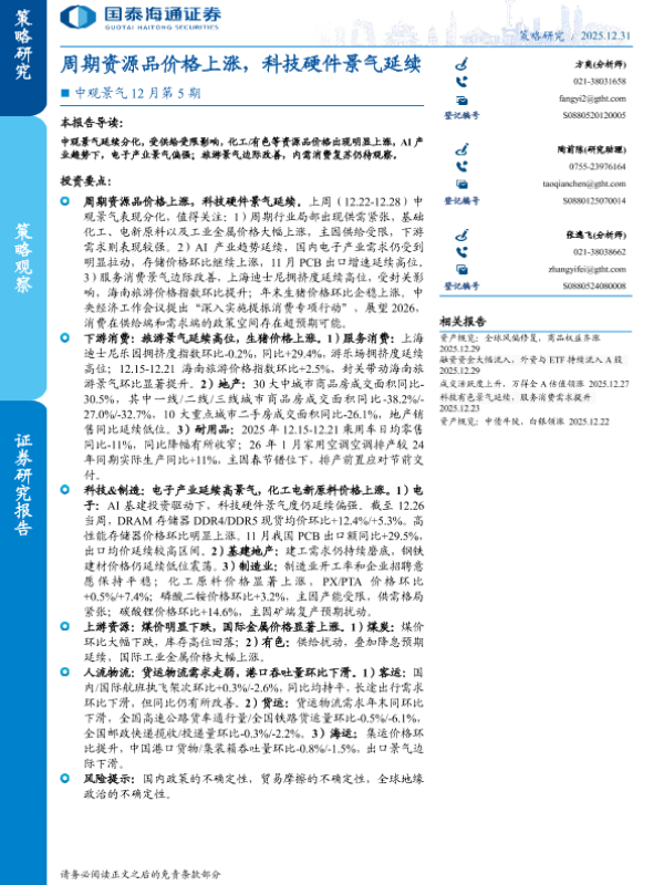 【国泰海通证券】【202512】周期资源品价格上涨,科技硬件景气延续-12页 证券期货研究报告