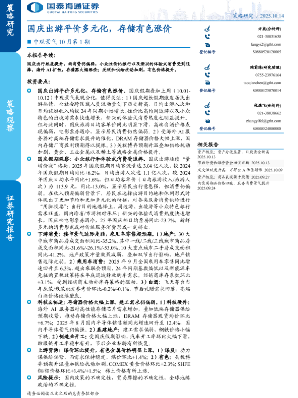 【国泰海通证券】【202510】国庆出游平价多元化,存储有色涨价-10页 证券期货研究报告