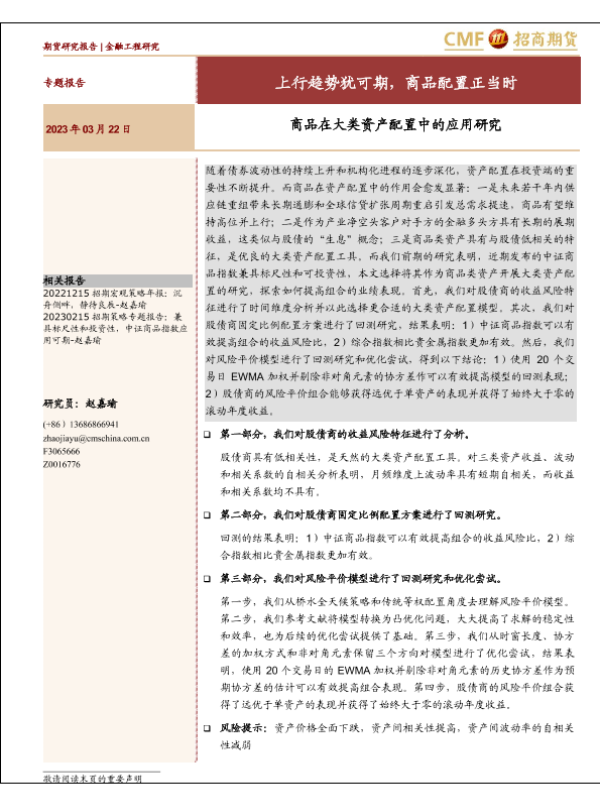 【招商期货】【20230322】商品在大类资产配置中的应用研究:上行趋势犹可期,商品配置正当时-26页 行业研究