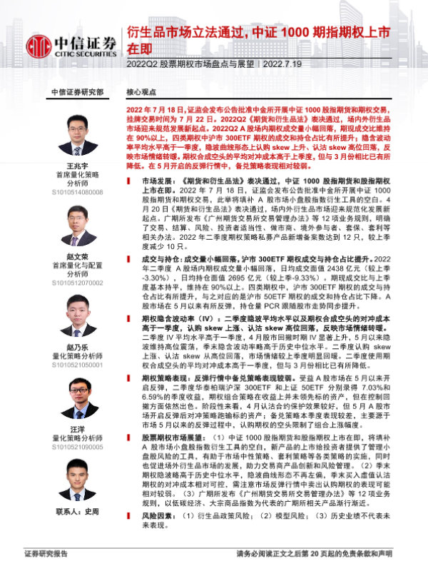 【中信证券】【20220719】2022Q2股票期权市场盘点与展望:衍生品市场立法通过,中证1000期指期权上市在即-21页 行业研究