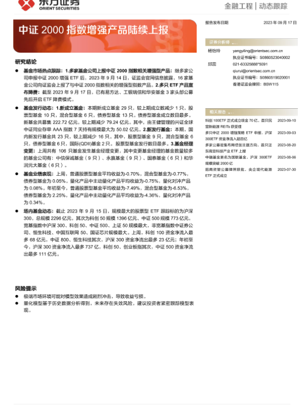 【东方证券】【20230917】金融工程动态跟踪:中证2000指数增强产品陆续上报-16页 行业研究