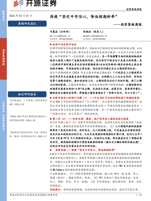 【开源证券】【202602】再提“坚定牛市信心,降低预期斜率”-16页 证券期货研究报告