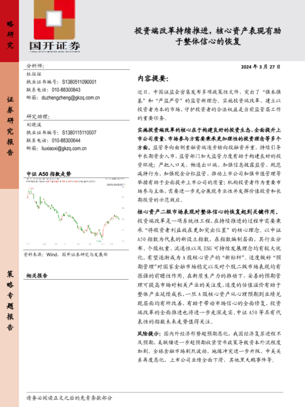 【国开证券】【20240327】策略专题报告:投资端改革持续推进,核心资产表现有助于整体信心的恢复-10页 宏观策略