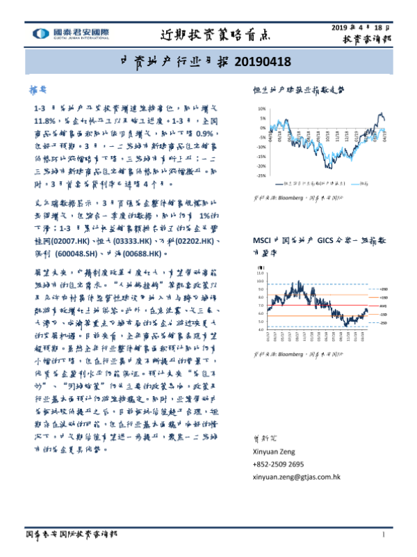 【国泰君安证券】【20190418】中资地产行业月报-8页 行业研究