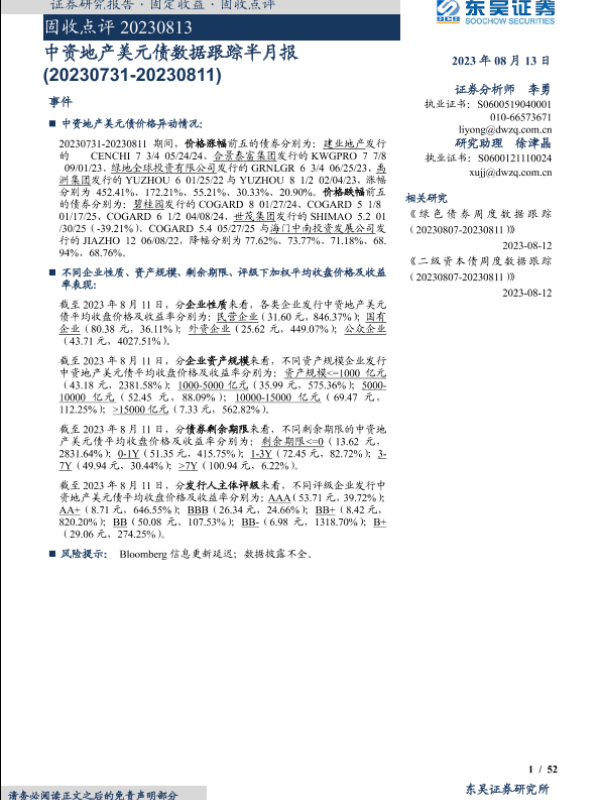 【东吴证券】【20230813】固收点评:中资地产美元债数据跟踪半月报-20230813-52页 行业研究
