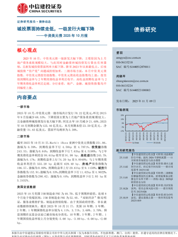 【中信建投证券】【202511】中资美元债 2025年 10月报——城投票面持续走低,一级发行大幅下降-14页 证券期货研究报告
