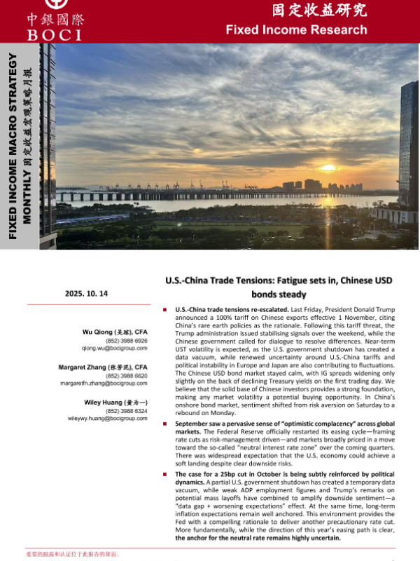 【中银证券】【202510】U.S.-China Trade Tensions Fatigue sets in, Chinese USD bonds steady-14页 证券期货研究报告