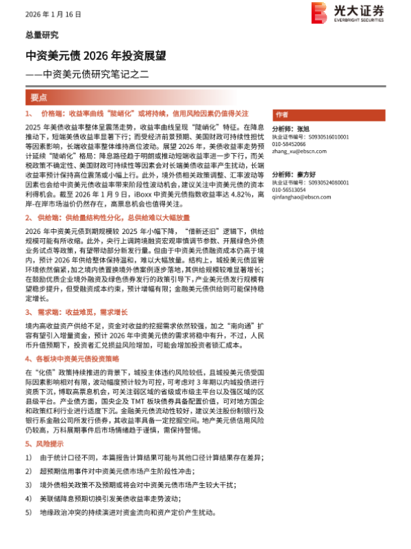 【光大证券】【202601】中资美元债2026年投资展望——中资美元债研究笔记之二-21页 证券期货研究报告